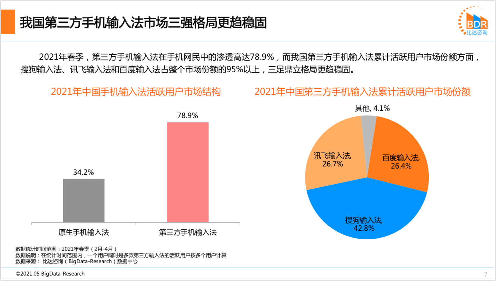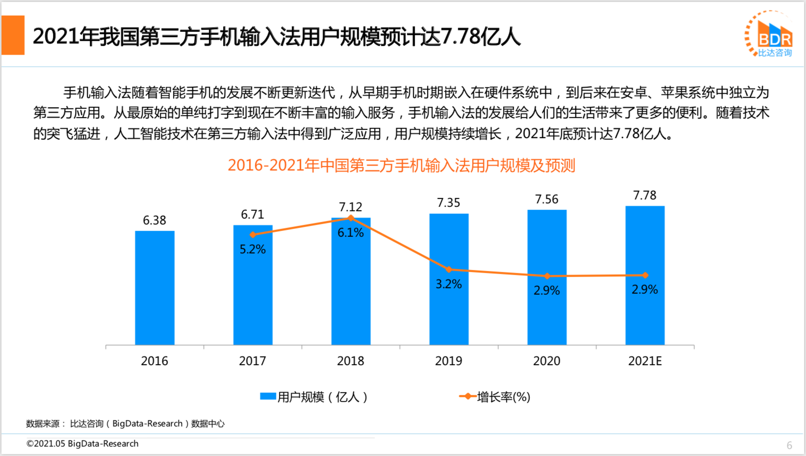 比达第三方输入法报告:2021年用户规模将达7.78亿,讯飞语音活跃用户行业领先